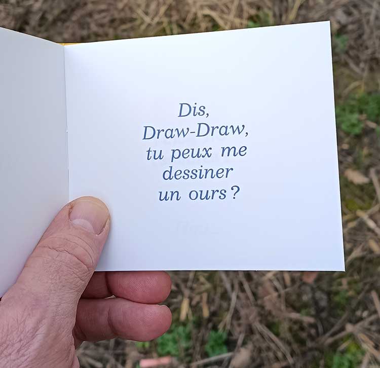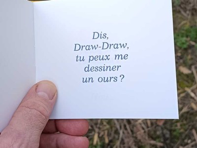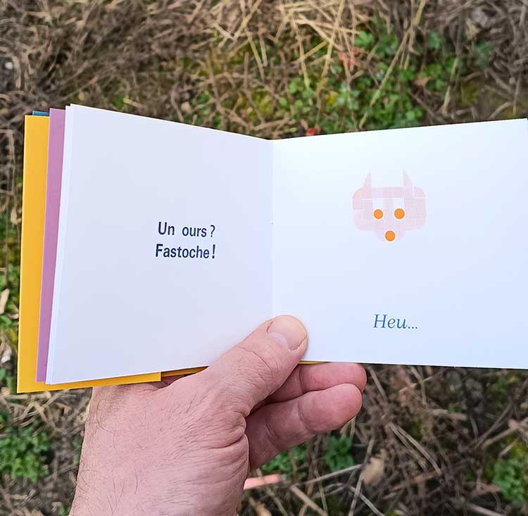 Ours, 10 x 11,5 cm. 24 pages, 8 €, composition manuelle, impression typographique. 250 ex.