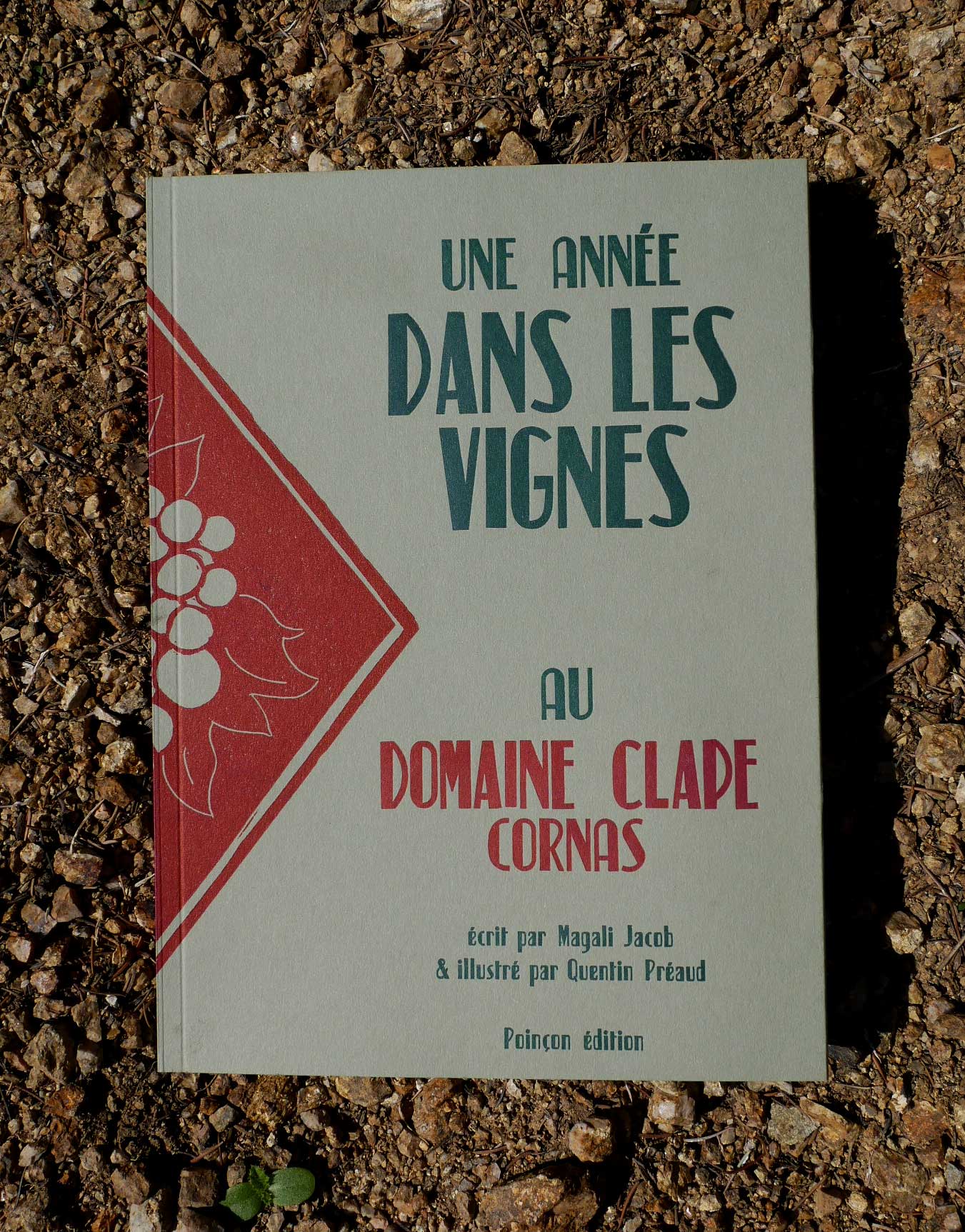 Le livre s'intitule donc "Une année dans les vignes, au domaine Clape, Cornas". Magali Jacob a créé sa propre maison d'édition pour l'occasion, les éditions Poinçons. Elle a dans l'idée de faire suite à cet ouvrage en se penchant sur les différentes appellations autour d'elles, en demandant, pour chaque tome, à un ou une illustratrice de faire suite à mon modeste travail. Je suis sûr que ça va être une très belle collection !